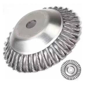 Escova de Aço para Roçadeira A escova de aço para roçadeiras é uma escova para limpeza produzida para acoplagem em qualquer roçadeira. Pode ser utilizada na limpeza de ruas pavimentadas, paralelepípedos, concreto, meio fios, entre outros locais, principalmente de difícil acesso, executando a raspagem nas vias, arrancando matos e gramíneas. Capina rápida, precisa e eficiente. Escovão produzido com cabos de aço prensados.