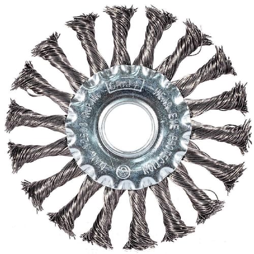Escova de aço circular trançado proporciona escovação mais agressiva. Utilizada em esmerilhadeira, sua principal característica é o uso em trabalhos mais pesados, já que a disposição trançada confere mais resistência aos arames de aço. Setores como o siderúrgico, metalúrgico, automobilístico, eletrônico estão entre os que mais utilizam a escova circular aço trançado.