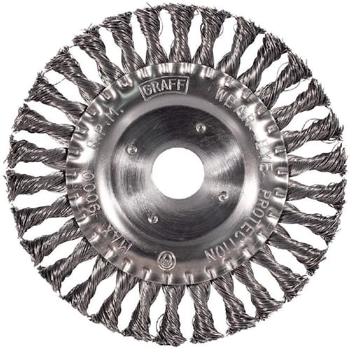 Marca: Graff Vantage Escova de aço circular trançado proporciona escovação mais agressiva. Utilizada em esmerilhadeira, sua principal característica é o uso em trabalhos mais pesados, já que a disposição trançada confere mais resistência aos arames de aço. Setores como o siderúrgico, metalúrgico, automobilístico, eletrônico estão entre os que mais utilizam a escova circular aço trançado. Marca: Graff