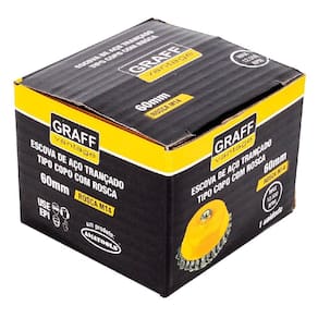Escova De Aço Trançado Tipo Copo Com Rosca 571,0020 - Graff Escova de Aço Trançado Tipo Copo Com Rosca Circular utilizado para limpar duramente superfícies de metal de ferrugem e sujeira e também para limpar junteiras de soldagem.