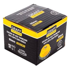 Escova De Aço Trançado Tipo Copo Com Rosca 571,0020 - Graff Escova de Aço Trançado Tipo Copo Com Rosca Circular utilizado para limpar duramente superfícies de metal de ferrugem e sujeira e também para limpar junteiras de soldagem.