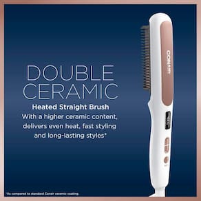 Escova reta dupla de cerâmica: esta escova alisadora possui placas aquecidas anti-escaldadura, proporcionando melhor contato com os cabelos e resultados mais suaves com menos danos. As cerdas térmicas em forma de V agarram suavemente o cabelo para um penteado mais próximo e fácil.