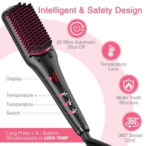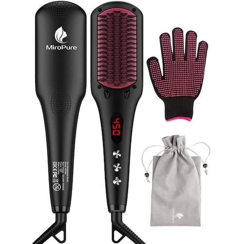 Escova de alisamento de cabelo de cerâmica aprimorada da MiroPure, escova de alisamento iônico 2 em 1 com função antiescaldadura, bloqueio automático da temperatura e função de desligamento automático (preta) — ? Cabelo liso, brilhante e sem crespo em minutos: seu cabelo demora uma eternidade para ser penteado? Esqueça a chapinha. Alguns pincéis do alisador de escova de cabelo MiroPure transformarão seu cabelo grosso e encaracolado em liso, liso e macio para o salão. - ? FÁCIL DE USAR: Conseguir fios maravilhosamente retos não poderia ser mais fácil. Em apenas 60 segundos, sua escova estará aquecida e pronta para deslizar pelo cabelo. E para facilitar? Um cabo giratório de 360° oferece facilidade de manobra. - ? FIOS RETOS SEM DANOS: As chapinhas deixam o cabelo seco e quebradiço? Nosso recurso anti-escaldadura protege seu cabelo da queima de placas. Um bloqueio de temperatura e o desligamento automático de 60 minutos oferecem maior tranquilidade. - ? ADEQUADO PARA TODOS OS TIPOS DE CABELO: cabelos finos, finos ou descoloridos? Ou talvez você esteja procurando uma escova alisadora para cabelos grossos? Com 16 configurações de temperatura, qualquer pessoa pode transformar cabelos opacos em mechas lindas e volumosas. - ? SIMPLIFIQUE SUA ROTINA DE MODELAGEM DE CABELO: Experimente o poder de um gerador iônico duplo, pois ele ajuda você a obter mechas naturais e brilhantes em menos tempo. Comece a alisar o cabelo de maneira rápida, fácil e segura agora.