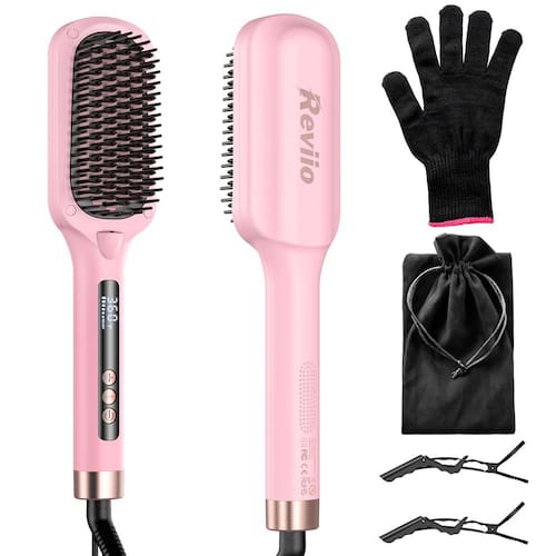 Escova alisadora de cabelo, escova de alisamento iônica negativa de aquecimento rápido dos anos 30, tensão global, 16 modos de temperatura, antifrizz, anti-queimadura, bloqueio automático de - [Desbloqueie cabelos lisos e sedososos]: usando tecnologia avançada de íons, ele libera 20 milhões de íons negativos durante a operação, bloqueando a umidade e reduzindo a estática. Diga adeus à secura, pontas duplas e cabelos danificados, pois ele cuida suavemente de suas mechas. - [Design inovador de dentes de pente 3D]: uma escova alisadora de cabelo com espaçamento mais amplo dos dentes do pente, minimiza o atrito excessivo em seus preciosos fios, reduzindo significativamente Reviio quebra e danos. Seu cabelo não merece nada além do melhor cuidado! - Economize tempo de penteado: diga adeus às chapinhas tradicionais! Nosso alisador de cabelo com escova quente aquece em 30 segundos, economizando tempo precioso durante sua rotina matinal. - [Processo de estilo simplificado]: com um cabo de alimentação giratório de 1,8 metros e 360 graus, diga adeus aos emaranhados de cabos — o estilo nunca foi tão fácil! - Segurança em primeiro lugar: bloqueia automaticamente a temperatura após 5 segundos. Além disso, desliga automaticamente após 60 minutos de inatividade. Além disso, receba luvas para proteger suas mãos e garantir uma experiência de estilo segura sem qualquer risco de queimaduras. - [Compatibilidade universal do cabelo e tensão global]: com 16 configurações de temperatura que variam de 82 °C a 232 °C, perfeito para todos os tipos de cabelo. Seu suporte universal de tensão (100-240V) o torna ideal para entusiastas de viagens ou qualquer pessoa constantemente em movimento.