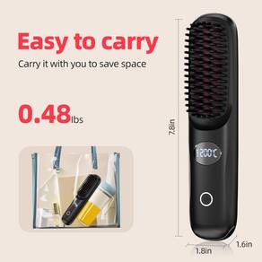 Experimente o estilo em movimento com esta escova de alisamento de cabelo sem fio. Projetada para conveniência em viagens, esta escova de alisamento de cabelo leve e portátil dá a você um cabelo suave e sem frizz em movimento. Ele usa tecnologia iônica avançada para alisar suavemente e alisar o cabelo enquanto minimiza os danos causados pelo calor. Aquecimento rápido e uma faixa de temperatura ajustável (160°C a 200°C ou 160.0 °C a 204.4 °C) garantem um estilo ideal para todos os tipos de cabelo. Equipado com uma bateria de longa duração e carregamento tipo C, pode ser utilizado durante o carregamento, tornando-o um companheiro versátil para suas necessidades de estilo. O visor digital LED oferece controle preciso de temperatura e o design ergonômico garante uma aderência confortável durante o uso. Pesando apenas 218 gramas, esta escova de alisamento de cabelo sem fio é a companhia perfeita de viagem, facilitando a criação de penteados de salão onde quer que suas aventuras o levem.
