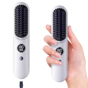 - ?Aquecimento rápido, alisamento rápido?A pulseira de escova alisadora de cabelo sem fio RMERVE tem dupla função de aquecimento de chip de cerâmica MCH, que pode aquecer até a temperatura máxima de 200 °C em 2 minutos, permitindo que você estilize seu cabelo com facilidade e rapidez.