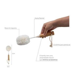 Escova de Bambu Oikos Flexível para Limpeza de Copos Off-White