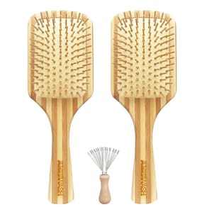 - Pacote econômico — O conjunto inclui 2 escovas grandes de bambu com pás e uma prática ferramenta de limpeza de escovas de cabelo. O ancinho para limpar escovas de cabelo, embora compacto, é durável e feito para durar. Ele remove com eficácia o excesso de cabelo, detritos e poeira de todos os tipos de escovas de cabelo, garantindo que suas escovas sempre pareçam frescas e limpas.