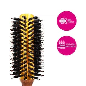 Ideal para alisamento de cabelos de tamanho médio. As cerdas e pinos proporcionam a tração ideal para cabelos mais volumosos e difíceis de penetrar. A base de alumínio aquece rapidamente com o calor do secador acelerando o processo de alisamento.