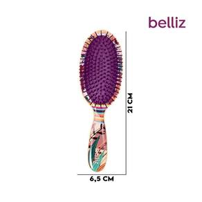A Escova de Cabelo Belliz Florescer Oval conta com cerdas de nylon com pontas protetoras que massageiam o couro cabeludo. Seu modelo raquete é ideal para desembaraçar e todos os tipos de cabelos. Cabo decorado com estampa exclusiva.