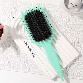 Especificação: Tamanho comprido: 18,5 cm (18,5 cm) 1 x escova de cabelo de nylon com cerdas de javali - ?Escova definidora de cachos?Seu cabo ergonômico e cerdas estrategicamente colocadas definem, moldam e desembaraçam cachos sem esforço. Com um design especial de dentes que ajuda a dividir uniformemente o cabelo para uma experiência de estilo mais conveniente. - ?Escova de cachos?Gerenciar o cuidado parcial do cabelo pode ser um desafio para pessoas com cabelos grossos. Nosso pente de cabelo ondulado facilita o manuseio, garantindo que seu cabelo permaneça limpo e organizado. - ?Escova definidora de cachos ? Além de sua função de cuidados com o cabelo, nosso pente também é perfeito para criar cachos elegantes. Você pode usá-lo para obter uma variedade de penteados modernos para um visual mais cativante. É uma aplicação versátil para aplicar produtos, desembaraçar ou simplesmente refrescar seus cachos. - ?Escova de cabelo para cabelos cacheados?Feito para durar, as cerdas de javali premium da escova garantem um desempenho duradouro, enquanto seu tamanho compacto permite um estilo conveniente em qualquer lugar. - ?Escova de cabelo com cerdas de javali?Além disso, a escova de cachos tem uma forma especial que também atua como uma ferramenta ideal para criar linhas perfeitamente lisas e separadas em seu cabelo. Cerdas suaves impedem quebras e danos em todos os tipos de cabelo e padrões de cachos.