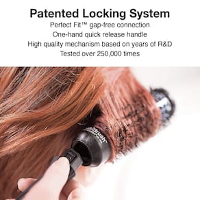 Tecnologia iônica hidrata a cutícula e adiciona brilho. Elimina o frizz e o desaparecimento antiestático. Cerdas autoaderentes para fixação de tensão extra. Tampa ventilada design de barril muito mais leve aumenta a ventilação para uma secagem mais rápida. O barril revestido de cerâmica aquece mais rápido e retém o calor por mais tempo. Estilo mais rápido, mais suave e melhor. Grandes orifícios maximizam o fluxo de ar. Sistema de bloqueio perfeito patenteado: ajuste perfeito, conexão sem lacunas, alça de liberação rápida de uma mão. Cabo ergonômico antiderrapante extremamente leve. - O pincel que lhe dá opções! - Uma alça. Vários barris. - Tecnologia iônica hidrata a cutícula e adiciona brilho. Elimina o frizz e o desaparecimento antiestático. - O tambor revestido de cerâmica aquece mais rápido e retém o calor por mais tempo. Estilo mais rápido, mais suave e melhor. Grandes orifícios maximizam o fluxo de ar
