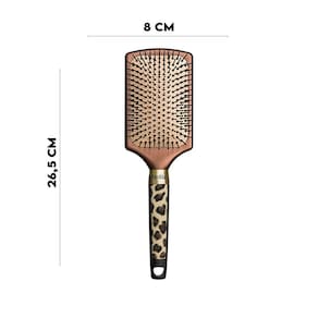 Escova Elegant com cabo estampado, cerdas com pontas arredondadas que protegem o couro cabeludo, ideal para desembaraça e finalizar todos os tipos de cabelo.