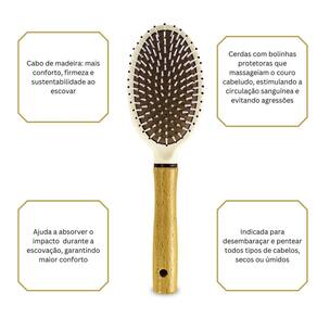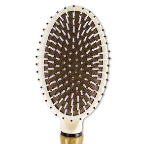 Escova De Cabelos Oval Almofadada Cabo Madeira