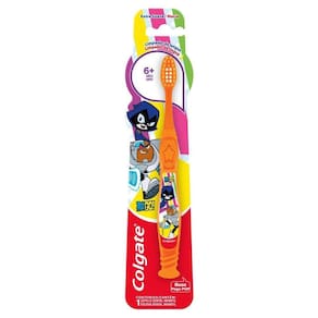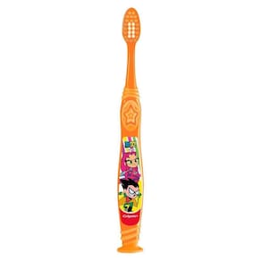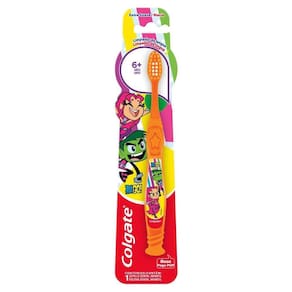 A Escova de dente Colgate Smiles Teen Titans Go 6+ Anos foi especialmente projetada para crianças com uma combinação de dentes de leite e permanentes. Possui cerdas extramacias em multinível, cabeça compacta, limpador de língua macio, cabo antiderrapante e base de sucção divertida.