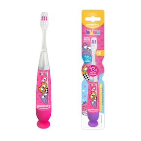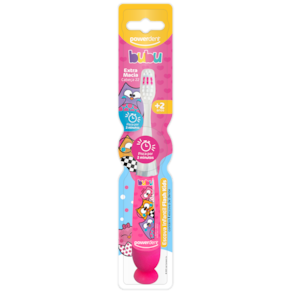 A escova de dente infantil Flash Kids Bubu e as Corujinhas é perfeita para a escovação dos dentes das crianças, possui cerdas extra macias, que tornam a escovação mais suave, sem machucar as gengivas e um cabo anatômico, emborrachado que se adapta perfeitamente às mãos dos pequenos. Ela pisca durante 2 minutos- timer para a escovação completa dos dentinhos.