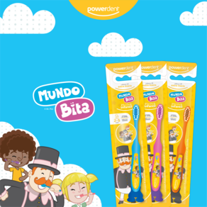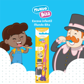 A escova dental infantil Powerdent Mundo Bita 2 a 5 é perfeita para a escovação dos dentinhos das crianças. Possui cerdas extra macias, que tornam a higiene mais suave e não machucam as gengivas. O cabo anatômico se adapta perfeitamente às mãos das pequenas e dos pequenos.Como usar:Passo 1: Coloque uma pequena quantidade de creme dental sobre as cerdas da escova.Passo 2: Posicione a escova em um ângulo de 45º na linha da gengiva.Passo 3: Mova a escova em movimentos para frente e para trás. Repita isso em cada dente.Passo 4: Utilize a ponta da escova para escovar atrás de cada dente, com movimentos superiores e inferiores.Power dica:Cuidar dos dentes das crianças é muito importante. Acompanhe a escovação dos seus filhos.Fique atento:Trocar a escova dental a cada três meses mantém os dentinhos das crianças saudáveis e livres de cáries.Informações importantes:Visite o dentista regularmente. Você terá informações sobre o melhor tipo de escova para a criança. O uso do produto deve ser supervisionado por um adulto. Declarado isento de registro pelo Ministério da Saúde. Não compre se a embalagem estiver violada. Conserve em local limpo, fresco e seco.Composição: Resina Termoplástica, Elastômero, Nylon, Âncoras Metálicas e Pigmentos.Mundo Bita © Mr. Plot Produções. Todos os direitos reservados.