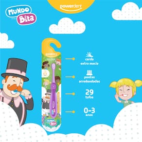 A escova de dente infantil First Kids Mundo Bita é perfeita para a escovação dos dentes das crianças, possui cerdas extra macias, que tornam a escovação mais suave, sem machucar as gengivas e um cabo anatômico, emborrachado que se adapta perfeitamente às mãos dos pequenos.