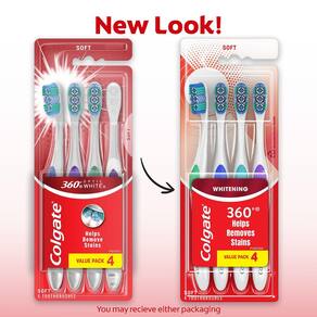- Inclui quatro (4) escovas de dentes Colgate 360 brancas macias para adultos, pacote de escova de dentes clareadora