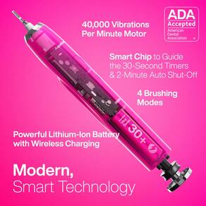 Aquasonic Escova de dentes ultra branqueadora Vibe Series – Escova de dentes elétrica aceita ADA – 8 cabeças de escova e estojo de viagem – Motor de 40.000 VPM e carregamento sem fio – 4 modos com temporizador inteligente - Escova de dentes elétrica inteligente de 40.000 VPM – Beleza, inteligência e potência. A série Vibe é uma escova de dentes elétrica moderna de classe mundial com a tecnologia mais atualizada. Possui um motor ultra potente e líder do setor que produz 40.000 vibrações por minuto, bateria de íon de lítio, carregamento sem fio ultrarrápido, operação em 4 modos, temporizadores de vibração inteligentes, 8 cabeças de escova projetadas pela DuPont e um estojo de viagem personalizado; tudo com um corpo elegante, ultrafino, leve e com classificação IPX7. - Aceito pelo Conselho de Assuntos Científicos da American Dental Association (ADA) – Colocamos nosso dinheiro onde está sua boca. Investir em tecnologias de higiene bucal premium rendeu à série Vibe o prestigioso selo de aprovação ADA. Ele demonstrou eficácia na remoção de placa bacteriana e ajuda a prevenir e reduzir a gengivite. A série Vibe vai além de apenas limpar os dentes – oferece cuidados bucais completos com modos exclusivos que incluem um para clarear e polir os dentes e um para melhorar a saúde das gengivas. - Tecnologia moderna para cuidados bucais completos: a série Vibe traz escovas de dentes aos tempos modernos com seus recursos aprimorados embutidos. Carregamento sem fio ultrarrápido (esqueça o carregamento USB barato), 4 modos de escovação distintos e um temporizador de notificação vibratório inteligente são alguns dos recursos aprimorados integrados ao elegante cabo impermeável e incrivelmente bonito de cetim violeta. - Conteúdo da embalagem: 1 escova de dentes inteligente rosa elétrica, 8 cabeças de escova DuPont com tampas protetoras para manter suas cabeças de escova limpas, 1 estojo de viagem personalizado, manual do usuário (sem garantia de versão em português)