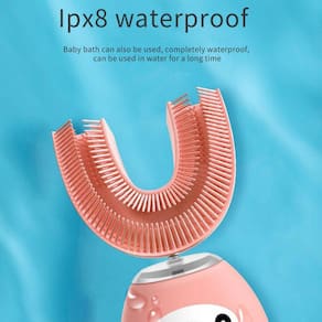 Características destacadas 1. Escova de dentes elétrica fofa para crianças: a cabeça exclusiva em forma de U se encaixa perfeitamente nos dentes das crianças e limpa completamente. As cerdas macias de silicone de qualidade alimentar são suaves o suficiente para serem s nos dentes sensíveis das crianças. 2. Fofo: o lindo tema de desenho animado e a alça da mini escova de dentes fácil de segurar tornam a experiência de escovação conveniente e divertida para as crianças. Fazer seu filho escovar os dentes nunca é um problema. 3. Limpeza ultrassônica de 360°: esta escova de dentes em forma de U foi especialmente projetada para vibrações de baixa eficiência. A temporização inteligente pode ser concluída a cada 45 segundos. Cubra cada parte em 360 graus para garantir a limpeza sem danificar a cavidade oral. 4. Implante de água: a tecnologia impermeável IPX8 permite que você limpe e limpe esta escova de dentes instantaneamente, o que é muito simples e conveniente. 5. Portabilidade: Este produto é pequeno e leve, o que é muito conveniente de transportar. Veja menos