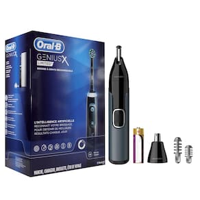 ESCOVA DE DENTES ELÉTRICA RECARREGÁVEL ORAL-B GENIUS X LIMITED COM 1 CABEÇA DE ESCOVA DE REPOSIÇÃO, ESTOJO DE VIAGEM, MIDNIGHT BLACK + NORELCO NORELCO NORELCO NOSE TRIMMER 3000 PARA NARIZ E SOBRANCELHAS #NT3600 /62 (PRETA) Escova de dentes elétrica recarregável Oral-B Genius X Limited com 1 cabeça de escova de reposição, estojo de viagem, preto
