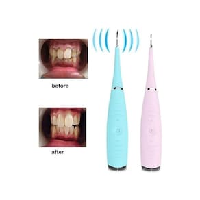 Pacote X2 com removedor de sarro dental Quita Sarro Saca Dental Sarro. Fácil de usar. Higiênico. Escova de dentes ultrassônica com luz LED. Prático e portátil para transportar em qualquer lugar. Remova suavemente o tártaro e os pontos sônicos pulsados. Remova cuidadosamente a placa e limpe as superfícies difíceis de alcançar. Os pulsos sônicos ajudam a reduzir a placa bacteriana e as sobras dos dentes. Branqueie os dentes e massageie as gengivas. O design ergonômico e a ponta de baixo perfil ajudam a alcançar os dentes traseiros. Dimensões do removedor: 183x30x22mm. Carregador: cabo DC (incluído). Fonte de alimentação de 5v (USB). Material: ABS\ nConteúdo da compra: 2 x Sarro2 Remover\ nx Cabo de carregamento USB