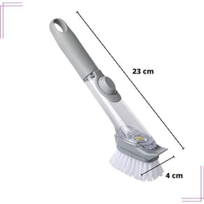 Que tal lavar as louças de forma prática e higiênica Com essa escova de limpeza você consegue remover facilmente a sujeira e limpar suavemente o fundo de panelas e utensílios antiaderentes sem esforço e sem sujar as mãos. Com um recipiente próprio que armazena o sabão, a escova oferece ainda mais comodidade, possui cerdas de nylon para remoção da sujeira. O formato ergonômico encaixa perfeitamente na mão, tornando a lavagem das louças mais fácil e agradável. A cabeça da escova é removível e substituível, facilitando a limpeza e trazendo mais durabilidade ao produto.