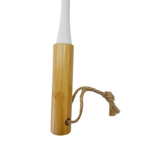 Cabo em madeira ergonômico que proporciona firmeza e alcance em profundidade. Furo na ponta do cabo para pendurar e economizar espaço na cozinha. Perfeita para objetos tubulares como garrafas térmicas, copos longos e potes estreitos.