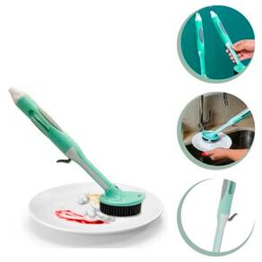 A Escova de Limpeza com Dispenser traz mais economia de tempo, menos esforço e menos desperdício de detergente para lavar louças e objetos, graças ao seu sistema de dispenser para detergente e material de cerdas flexíveis em nylon, possibilitando uma limpeza eficiente. Bora comprar a Escova e ter praticidade e velocidade para lavar louças? Itens: 01 Escova de Limpeza 2 em 1 Com Dispenser para Detergente