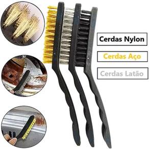 Conteúdo: 1 escova com cerdas de latão; 1 escova com cerdas em aço inox; 1 escova com cerdas em nylon.