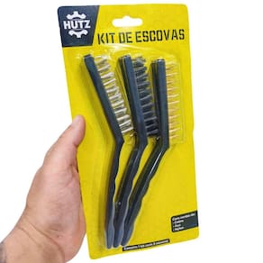 Conteúdo: 1 escova com cerdas de latão; 1 escova com cerdas em aço inox; 1 escova com cerdas em nylon.