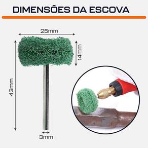 Escova de Polimento Nylon 25mm Grão 180 para Micro Retíficas Dremax - Marca: Dremax - Referência: EPN002 - Cor: Verde - Material: Fibra do nylon - Gramatura: Grão 180 grosso-médio - Diâmetro da escova: 25mm 1 Pol. - Espessura aproximada da escova: 14mm - Diâmetro da haste: 3mm 1/8 Pol. - Comprimento: 43mm - Modelo exclusivo com 3 camadas de espessura, mas eficaz e durável que os concorrentes - Escova tipo Scotch Brite - Velocidade de trabalho recomendada: 2.000 a 12.000rpm - As escovas almofadas de polimento são usadas em polimento madeira, metal, polimento de pedra etc. , gravura, moagem, lixamento e limpeza - Ideal para limpeza, desbaste e polimento de todos os tipos de joias e metais preciosos. - Acessório indicado para joalheiros, serralheiros, armeiros, técnicos, colecionadores de moedas, arqueólogos, estudantes, etc. - Indicado para todas as marcas de micro retíficas, como Dremel, Charbs, Einhell, Black+Decker, Dremax, Mondial, Vonder, Titanium, Western, Ingco, Gamma, Wesco, etc. - : 90 dias contra defeitos de fabricação A DREMAX é a primeira e única marca brasileira dedicada exclusivamente às micro retíficas, acessórios e acoplamentos para esta indispensável ferramenta. Seja para trabalhos de precisão, artesanato, modelagem ou reparos, a DREMAX tem o produto certo para você.
