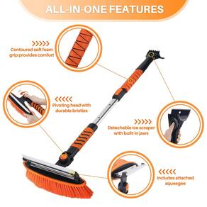 Esta ferramenta de remoção de gelo e neve em três partes tem um design inovador com uma escova de neve de cerdas grossas, um rodo e uma lâmina raspadora de gelo, montada em uma alça telescópica. Ele se estende até 106 cm, o que lhe dá um alcance adequado para a maioria das tarefas de degelo do para-brisas do carro, - ?Combinação de escova e rodo? A cabeça da escova de cerdas de camada dupla empurra facilmente a neve pesada do capô e do teto do carro, e uma lâmina de borracha flexível está convenientemente localizada em frente à escova para se livrar da neve molhada e da água. A cabeça da escova tem um pivô travável para que você possa girá-la até 270° para limpar a neve em qualquer direção. - ?Mecanismo de extensão de travamento automático? Este raspador de neve resistente tem uma alça acolchoada e ergonômica para uma aderência confortável, pode ser ajustado de 86 a 106 cm para alcançar a maioria dos para-brisas, mas não muito pesado, facilitando a remoção de neve. - ?Raspador de dois lados? O raspador de gelo de plástico de alto impacto tem uma lâmina reta de um lado e garras semelhantes a dentes do outro, você pode arrastar pelo gelo para criar depressões que enfraquecem o acúmulo e facilitam a raspagem. - ?Quebra para armazenamento? Raspadores de gelo para para-brisa de carro com um design compacto que pode ser destacado em 3 peças para armazenamento mais conveniente, você pode dividir as tarefas se tiver um ajudante ou facilitar o manuseio do trabalho que você está fazendo com uma ferramenta mais curta. - ?Serviço pós-venda sem preocupações? A escova de neve para carro possui três ferramentas convenientes — uma escova de neve, rodo e extremidade de raspagem — tudo em um. Se o raspador de neve e a escova de carro não atenderem às suas expectativas, sinta-se à vontade para entrar em contato conosco. Forneceremos uma solução dentro de 24 horas, obrigado.