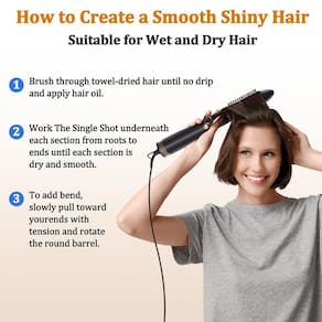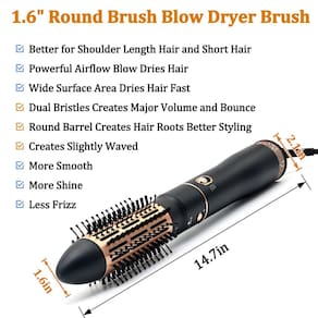 Apresentamos a escova redonda para secador de cabelo – sua solução completa para penteados de qualidade de salão no conforto da sua casa. Com este secador de cabelo redondo, você pode obter a explosão perfeita e modelar seu cabelo sem esforço, economizando tempo e dinheiro. Esta escova redonda para secador de cabelo é projetada para atender a todas as suas necessidades de cabelo. Funciona como escova, secadora e modelador em um, permitindo que você seque, alise, enrole e modele seu cabelo com facilidade. A escova secadora com seu design fácil de usar, esta escova de secador possui uma saída de ar exclusiva para adicionar volume e criar belos cachos em C. A alça confortável oferece uma aderência firme, garantindo um estilo sem esforço. Sua segurança é nossa maior prioridade. É por isso que este secador de cabelo está equipado com vários recursos de segurança. O plugue ALCI garante segurança elétrica, enquanto a cabeça anti-queimaduras garante proteção contra queimaduras. O revestimento cerâmico do modelador rotativo oferece distribuição uniforme de calor, resultando em secagem rápida e eficiente. A tecnologia de íons negativos ajuda a reduzir o frizz e a estática, deixando seu cabelo mais saudável e brilhante do que nunca. Você pode contar com a escova secadora de cabelo para todas as suas necessidades de penteado. É ideal para quem procura uma escova de secador redonda versátil que pode alisar, enrolar e adicionar volume ao cabelo. A escova redonda para secador de cabelo a torna perfeita para enrolar e adicionar brilho ao seu cabelo. Se você está buscando um visual elegante e liso ou volumosos cachos C, esta escova secadora oferece resultados excepcionais. Sua tecnologia avançada combinada com seu design ergonômico garante um acabamento de qualidade de salão sempre. - Economizando metade do tempo de rotina: secagem, penteado, fixando o cabelo ao mesmo tempo com esta escova redonda de secador de cabelo. Escova redonda para secador de cabelo, adequada para mulheres com comprimento do pescoço até as axilas. Adequado para cabelo cortado - Cabelo volumizante e sem frizz: a escova secadora redonda de 4 cm com íons negativos para alisar e nutrir os cabelos. Cilindro de cerâmica com bristels macios e ventilação de fluxo de ar exclusiva para calor uniforme, minimizando os danos causados pelo calor. - Mude seu visual sem esforço: se você está procurando cabelos lisos e volumosos ou ondas bonitas, esta escova de secador permite que você consiga tudo sem o incômodo de vários aparelhos. - Várias opções de temperatura: este secador de cabelo redondo oferece três modos de aquecimento e duas velocidades de ar para diferentes tipos de cabelo. Ar quente para secar e pentear. Use esta escova de ar quente de um passo para pentear o cabelo após secar com toalha para obter melhores resultados - Seguro e sem complicações: plugue ALCI e UL, proteção contra superaquecimento, desligamento automático e cabo giratório de 360° de comprimento de 1,8 m o tornarão seguro e fácil de usar - Dicas: não é uma escova giratória ou giratória automática. O tamanho da alça é de 6 cm, faça vários penteados com as duas mãos.