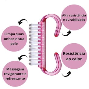 Suas cerdas de nylon limpam suas unhas e sua pele proporcionando uma massagem revigorante e refrescante. Cabo anatômico em PVC de alta resistência e durabilidade. Resistência ao calor. Desenhada para limpeza de unhas e pele. Utilizar água morna e sabão.