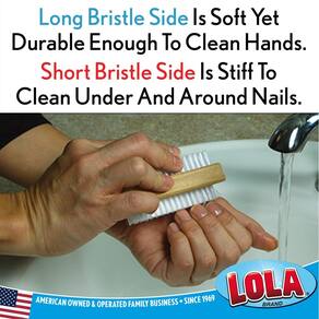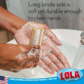 Mantenha as suas mãos agradável e limpo com esta mão e unha escova de Lola. Feito com cerdas de nylon e uma alça de madeira atraente, esta escova é perfeita para grandes e pequenas mãos. Possui um design de duas faces, com uma menor lateral para unhas e uma maior lado para as mãos. Perfeita para casa ao esmalte e cuidados, esta escova de mão e unha é um deve ter.