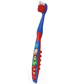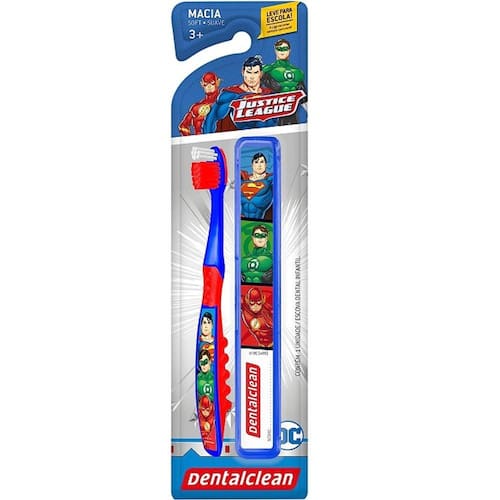 A escova dental da Liga da Justiça possui cerdas macias com pontas arredondadas que protegem as gengivas e os dentes do seu filho(a).