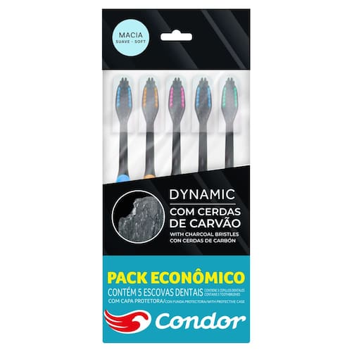 A Escova Dental Macia Condor Dynamic possui cerdas frontais mais altas que alcançam e limpam os dentes lá do fundo.