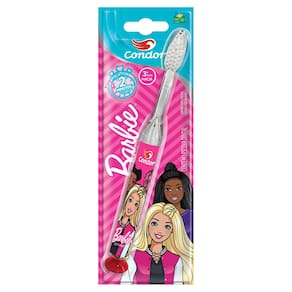 Escovar os dentes ficou muito mais divertido! A escova dental infantil Barbie tem luz de led colorida e pisca durante 2 minutos, o tempo ideal para escovação. Com cabeça pequena e arredondada, base de ventosa e cerdas macias, essa escova é perfeita para crianças com mais de 3 anos.