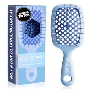 Mini escova desembaraçadora FHI Heat UnBrush para escovar sem dor em todos os tipos de cabelos úmidos ou secos — cerdas antiestáticas Duoflex duráveis, alça leve, miniescova de cabelo ventilada, pervinca azul claro