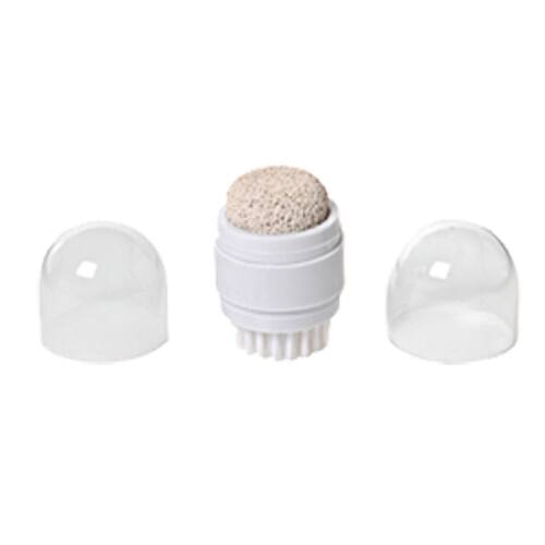 Escova e pedra pomes para pé, escova de unha utilizada para higiene adequada das unhas e da pele ao redor das unhas. A pedra pomes é um produto natural usada nos pés para remover as células mortas e a pele grossa da planta dos pés, além de ajudar a combater as rachaduras e o ressecamento.