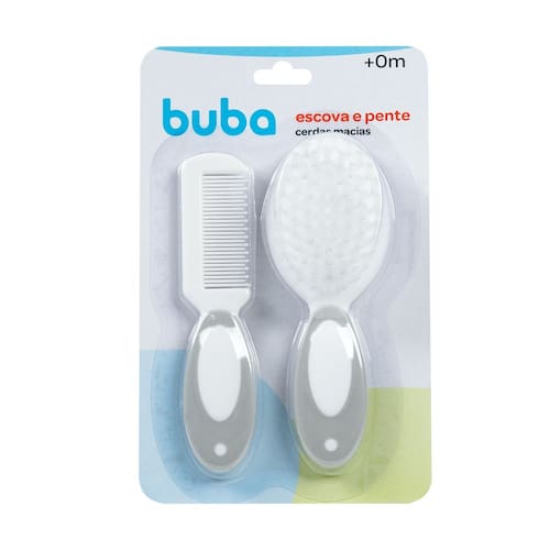 Características Técnicas - Conteúdo da Embalagem: 1 Escova e 1 Pente - Dimensões Aproximadas do Produto: 14 x 4 x 3 cm (Altura x Largura x Comprimento/Profundidade) - Dimensões da Aproximadas da Embalagem: 20 x 13 x 3 cm (Altura x Largura x Comprimento/Profundidade) - Material/Composição: Pente: Parte Branca: 100% Polipropileno (PP), Parte Colorida: 100% Borracha Termoplástica (TPR), Escova: Parte Branca: 100% Polipropileno (PP), Parte Colorida: 100% Borracha Termoplástica (TPR), Cerdas: 100% Náilon. - Marca: Buba