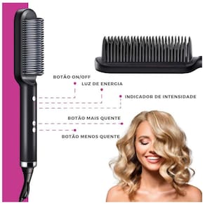 Escova Elétrica Profissional Seca e Alisa Alisador de cabelo profissional multifuncional, escova modeladora de cerâmica, escova de cabelo, alisadores de cabelo. Agora com a nova Escova Elétrica Alisadora você alcança os resultados do salão em sua própria casa. Especialmente desenvolvida para FACILITAR totalmente a sua vida, graças a sua tecnologia de alisar cada mecha do cabelo de maneira individual, e o melhor, sem causar dano aos fios. Obtenha os melhores resultados de forma rápida e prática. A mesma, possui uma Tecnologia Exclusiva de Multi-placas, que durante o uso da escova, cada mecha é dividida em 25 partes através de placas de cerâmica PTC com iôns, onde são alisadas, modeladas e alinhadas desde a raiz até as pontas de maneira individual. Esse processo evita que você passe a escova na mecha mais de uma vez, garantindo cabelos lisos e alinhados com apenas uma passada Além disso, nossa escova alisadora conta com um sistema de temperatura inteligente. Contém um regulador de temperatura de 5 níveis adequados para cada tipo de cabelo: 200C - adequado para cabelos resistentes grossos ou crespos 185C - adequado para cabelos ondulados e levemente cacheados170C - adequado para cabelos escuros ou com tintura155C - adequado para cabelos descoloridos, com química ou fragilizados140C - adequado para cabelos danificados, finos ou fragilizados Indicações de Uso PARA UM RESULTADO VOLUMOSO:Encaixe a Escova alisadora na mecha com suas cerdas viradas para cima, passando a escova por dentro do cabelo, da raiz até as pontas. PARA UM RESULTADO ULTRA-LISO:Encaixe a Escova alisadora na mecha com suas cerdas viradas para dentro, passando a escova por cima/fora do cabelo, da raiz até as pontas. Principais Benefícios - Fácil de manusear.- Produto leve e portátil.- Economia de tempo.- Contém cerdas de cerâmica em formato V que dão mais brilho e maciez.- Alcança a raiz do cabelo sem queimar.- Reduz os danos ao cabelo enquanto alisa.- Protege o cabelo com suas cerdas de cerâmica iônica.- Contém proteção contra queimaduras no couro cabeludo.- Não marca o cabelo.- Contém um design elegante, ergonômico e multifuncional.- Oferece aquecimento rápido.- Oferece efeito profissional.- Contém Indicador de temperatura LED digital .- Oferece temperatura uniforme em toda a superfície de aquecimento.- Contém controle de temperatura de 150C a 200C.- Indicado para uso doméstico e profissional. Cuidados Importantes - Não segure ou toque nas cerdas durante o uso. - Desconecte o aparelho da tomada se não estiver usando- Aguarde esfriar completamente antes de limpar e desligar.- Mantenha o aparelho longe do alcance de crianças- Em caso de sensibilidades, queimaduras, ou anomalias, suspender o uso do aparelho imediatamente.- Mantenha este aparelho longe de líquidos, água e umidade. Especificações Técnicas - Potência: 45W- Frequência nominal: 50Hz- Voltagem: 110V/220V - Bivolt automático- Material das placas: Cerâmica PTC- Temperatura: 5 níveis 140C a 200C Itens Inclusos - 1 Escova Pente Alisadora de Cabelo- 1 Manual do usuário ================================== Dúvidas Frequentes - É BivoltSim. - Posso usar com o cabelo molhadoNão. Para mais segurança use somente com o cabelo úmido. - Serve para cabelos curtosNão é o mais indicado, mas dependendo do tamanho serve sim. - Serve para cabelos volumososSim, perfeitamente - Comprando agora quanto tempo pra entregar - O produto é resistenteTrabalhamos apenas com produtos com material de altíssima qualidade, produtos de alta durabilidade e procedência.