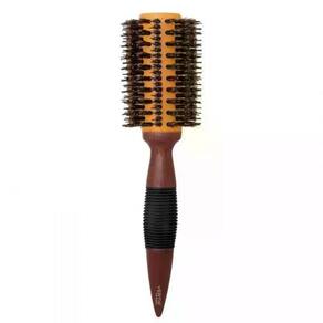 Escova redonda de madeira com base de cerâmica e cerdas naturais de javali intercaladas com pinos de nylon. A base de cerâmica retém o calor do secador por mais tempo, além de distribui-lo mais uniformemente. As cerdas e pinos proporcionam a tração ideal para cabelos mais volumosos e difíceis de penetrar.