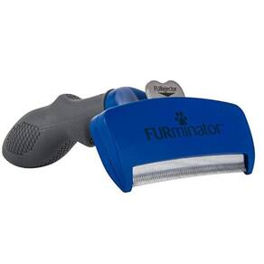 Escova Furminator New Cães Pelo Curto Grande A Escova Furminator New Cães Pelo Curto é muito usada e recomendada por veterinários e profissionais do ramo. É uma ferramenta intrínseca que reduz consideravelmente a queda dos pelos, aniquila os pelos mortos distribuindo harmoniosamente os óleos naturais da pelagem. Contribui para a saúde da pele e aparência dos pelos, deixando-os limpos e com muito mais brilho. Dimensões Aproximadas: 14 cm | Largura: 4 cm | Comprimento: 11 cm