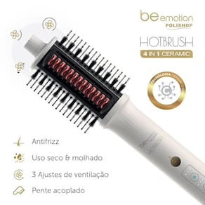 A rotina de beleza ficou muito mais rápida e prática! Conheça a Hot Brush be emotion, a escova 4 em 1 que seca, alisa, modela e cria volume, tudo ao mesmo tempo e com apenas um giro! Seu alto fluxo de ar, desempenho surpreendente e temperatura ideal para um liso impecável, ela entrega fios alinhados, brilhantes e com movimento natural, em poucos minutos. Ideal para todos os tipos de cabelo, sem esforço e com acabamento de salão!