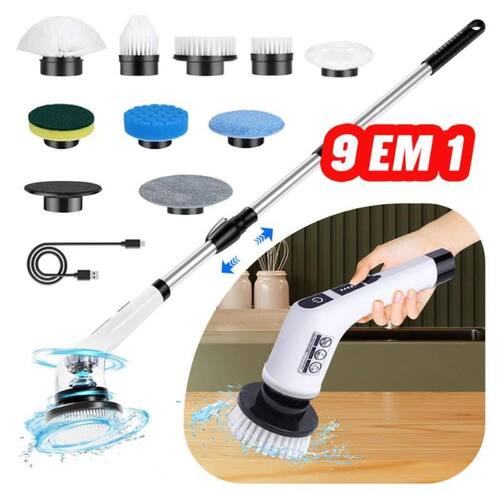 Escova De Limpeza elétrico Ajustável Janela Banheiro e Cozinha 9 em 1 Recarregável, Esfregão 3 em 1 Escova de Limpeza Recarregável. -apropriada para limpar a casa inteira e a superfície do carro. As peças da máquina de lavar roupa multifuncional podem ser montadas conforme necessário, o que é adequado para limpeza doméstica.