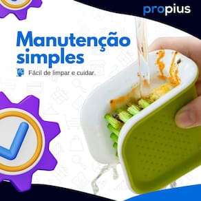 - Design confortável: A escova se encaixa perfeitamente em sua mão, tornando a experiência de limpeza não apenas eficiente, mas também confortável. Seus dias de esforço e tensão ao limpar talheres estão prestes a terminar.