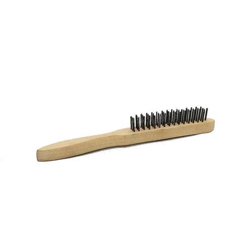 Escova manual com cabo madeira inox 3 fileiras - material/acabamento das cerdas da escova: aço inoxidável - material do cabo da escova: madeira - material da base da escova: madeira - indicada para limpeza de peças em geral. - possui cerdas em aço inox, proporcionando maior resistência à oxidação/corrosão. Marca: Não Informado